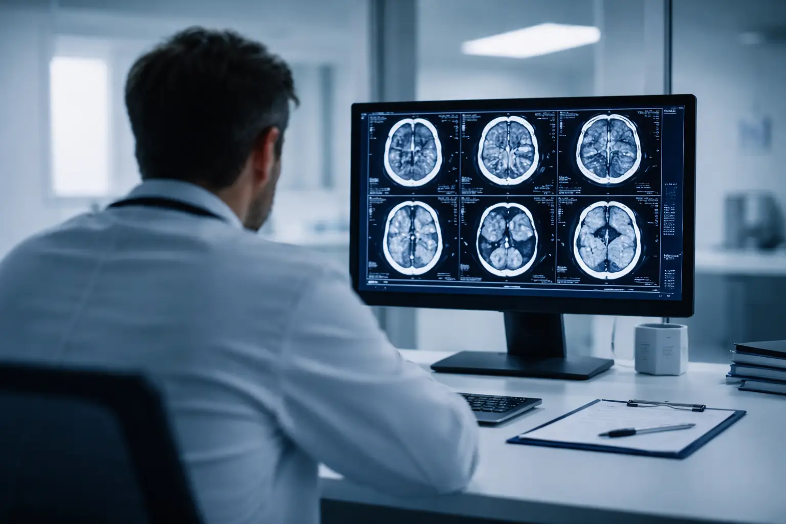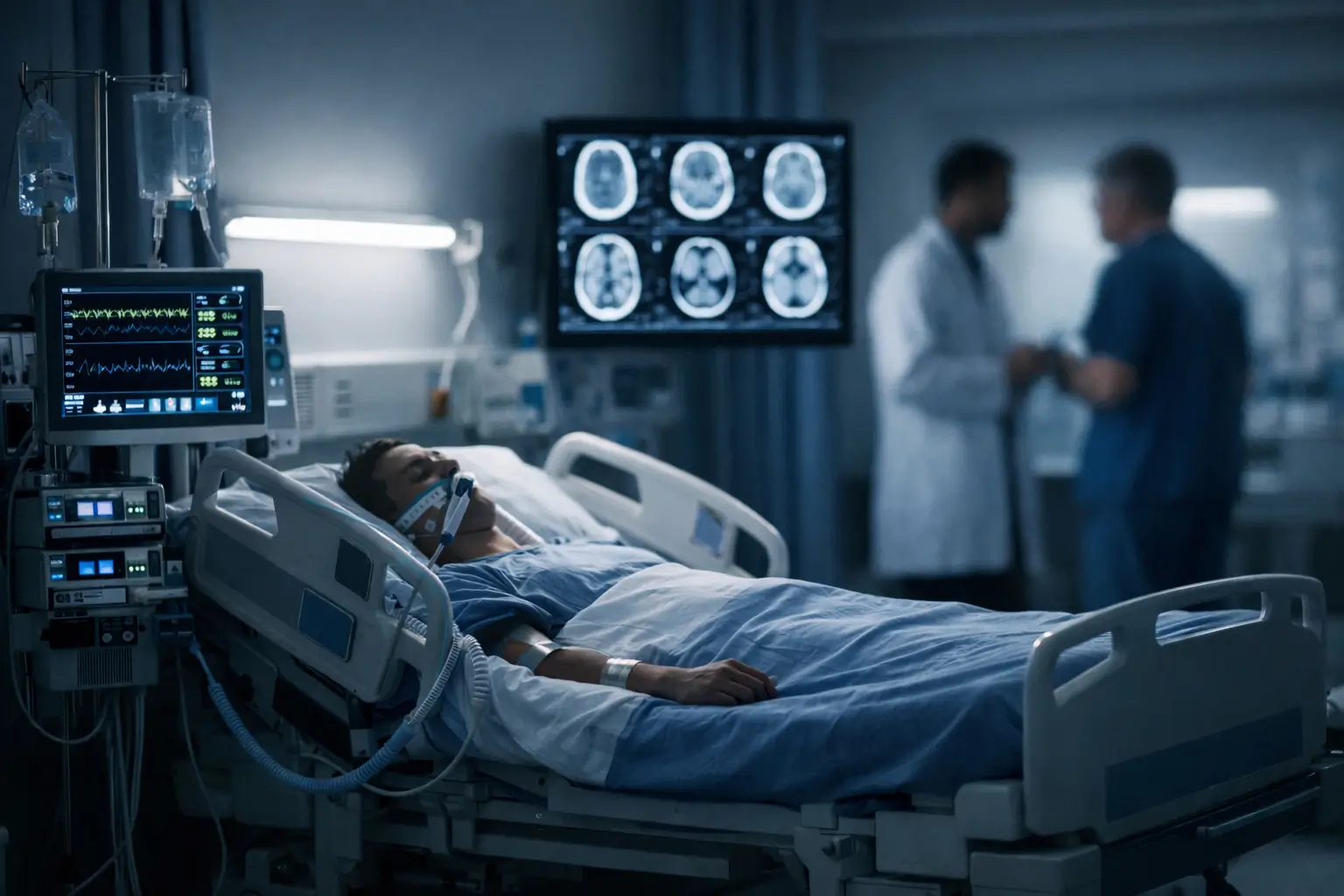 For failure to diagnose brain bleed caused by embolization procedure, resulting in death.
